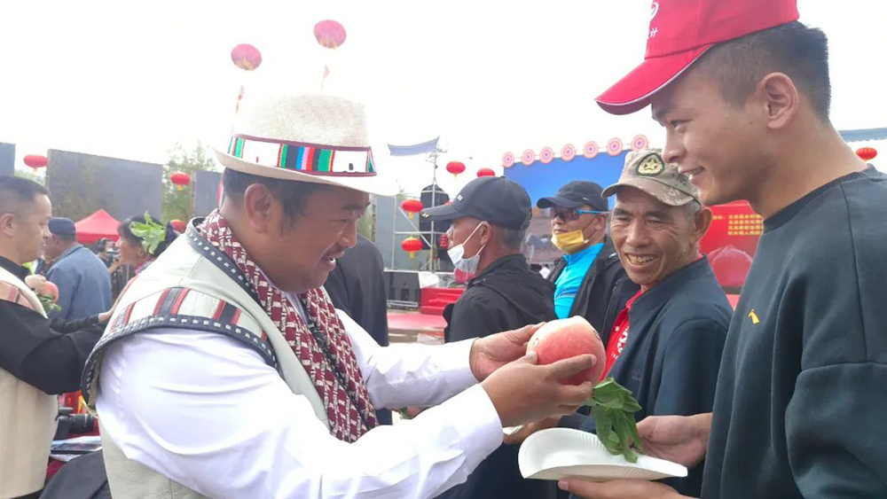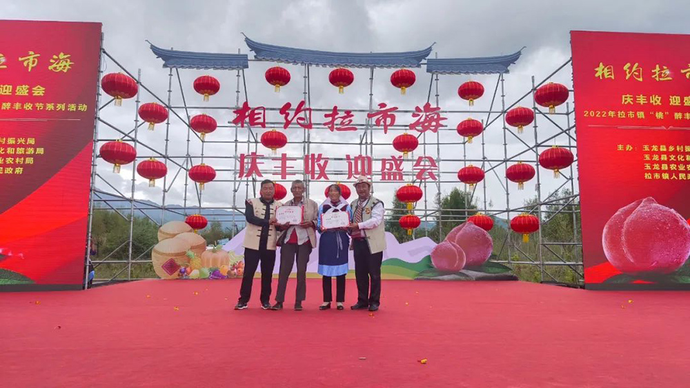上午9點,玉龍縣拉市鎮(zhèn)“桃”醉豐收節(jié)在瑞祥雪桃開發(fā)有限公司基地熱鬧舉行?,F(xiàn)場不僅有精彩的文藝匯演及各種蔬菜瓜果的展示,來賓們還共同見證了2022年麗江雪桃“桃王”、“桃后”的誕生。
